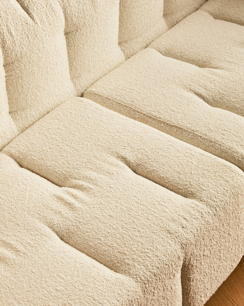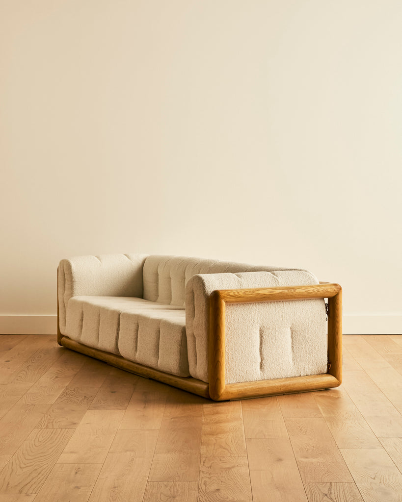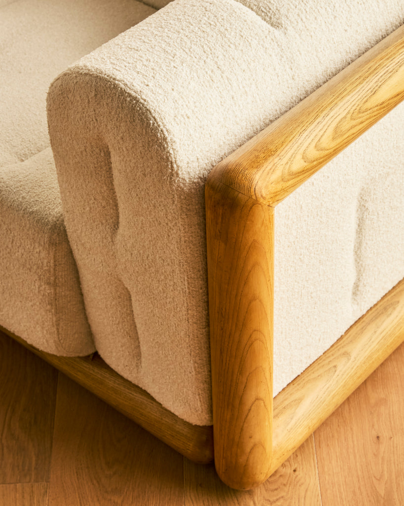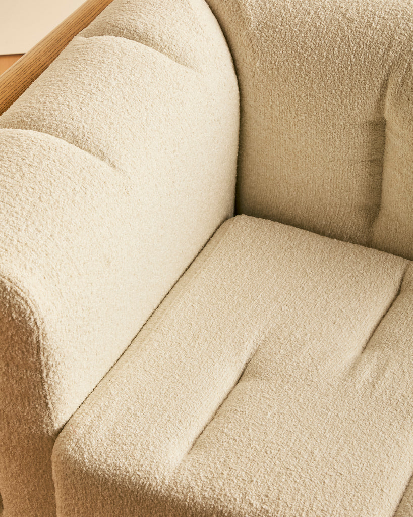 • Materials: Cotton wool boucle, wood, leather