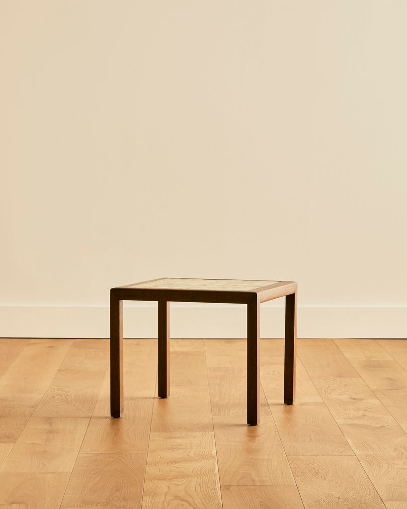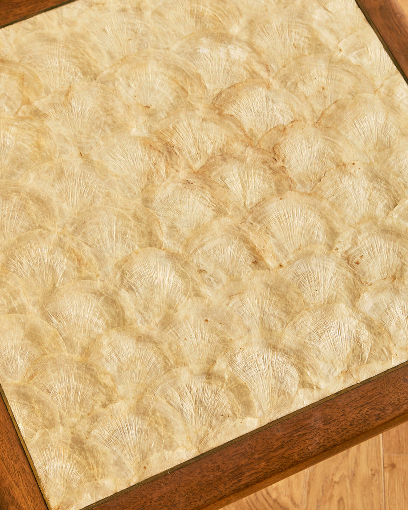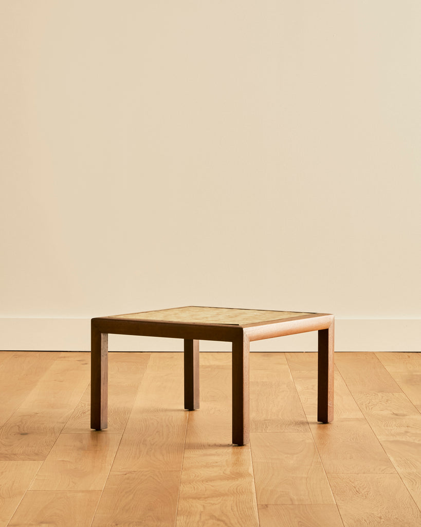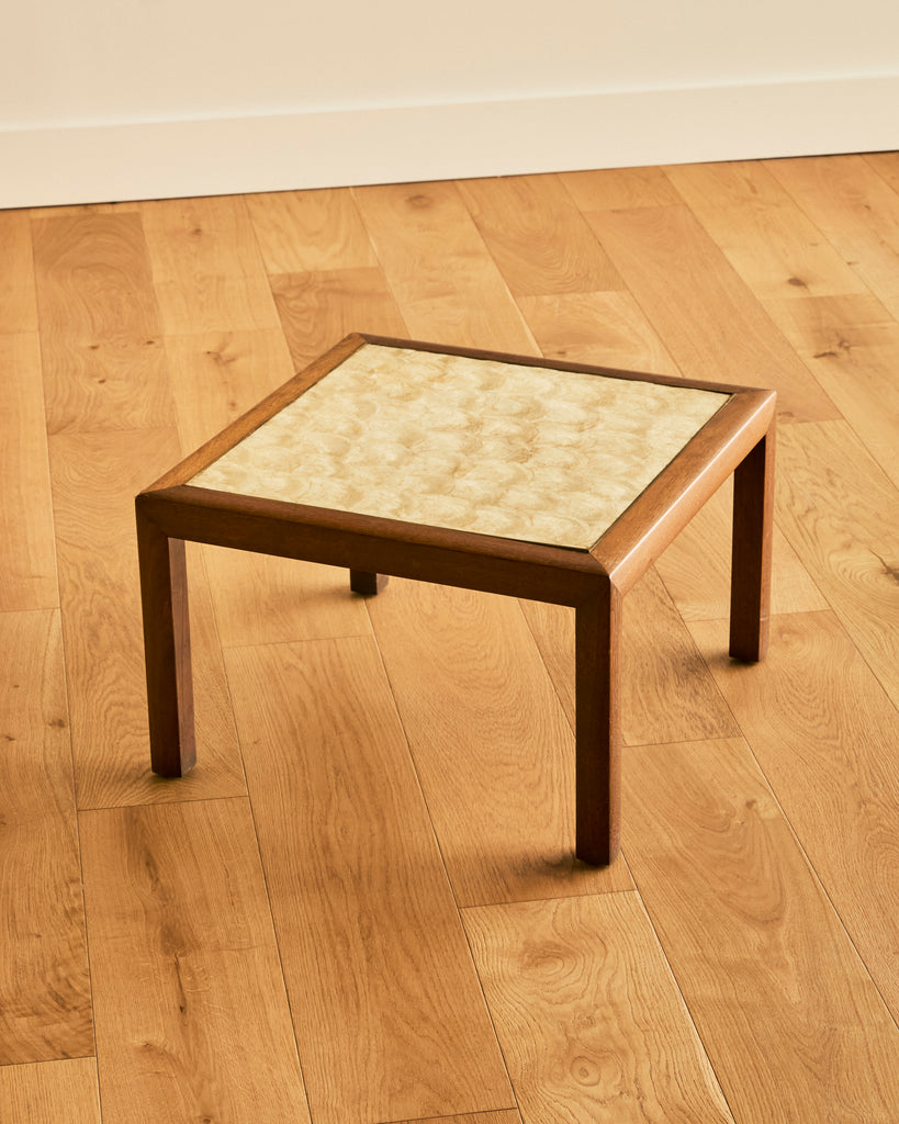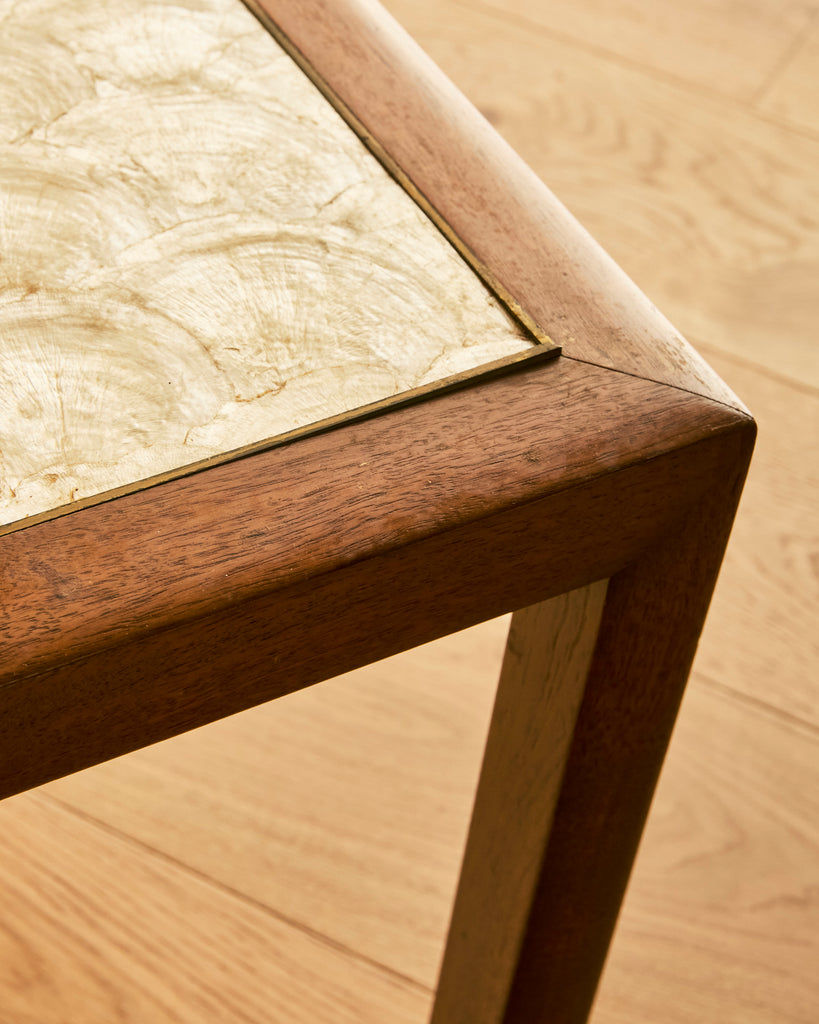 MID CENTURY MODERN SHELLED TOPPED WALNUT SIDE TABLE