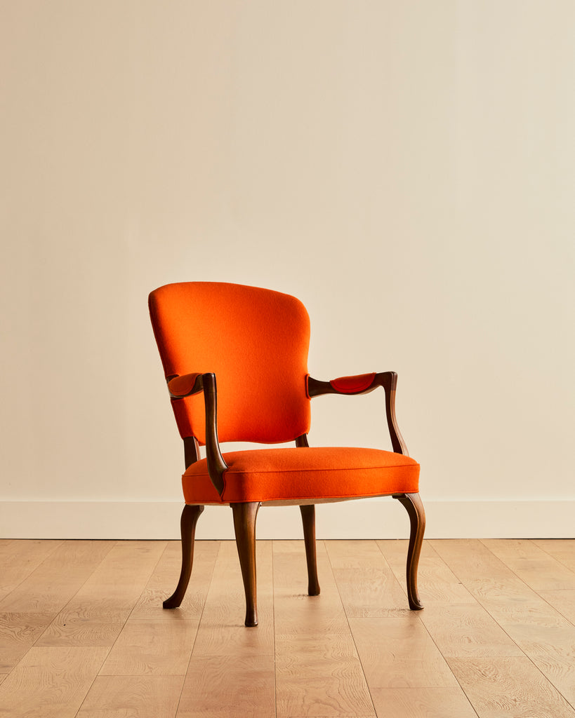 FRITZ HENNINGSEN WOOL FELT AND MAHOGANY CHAIR